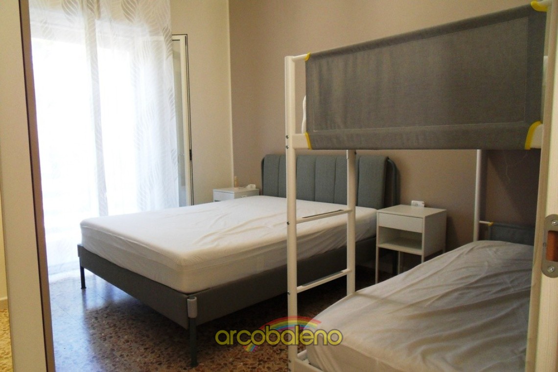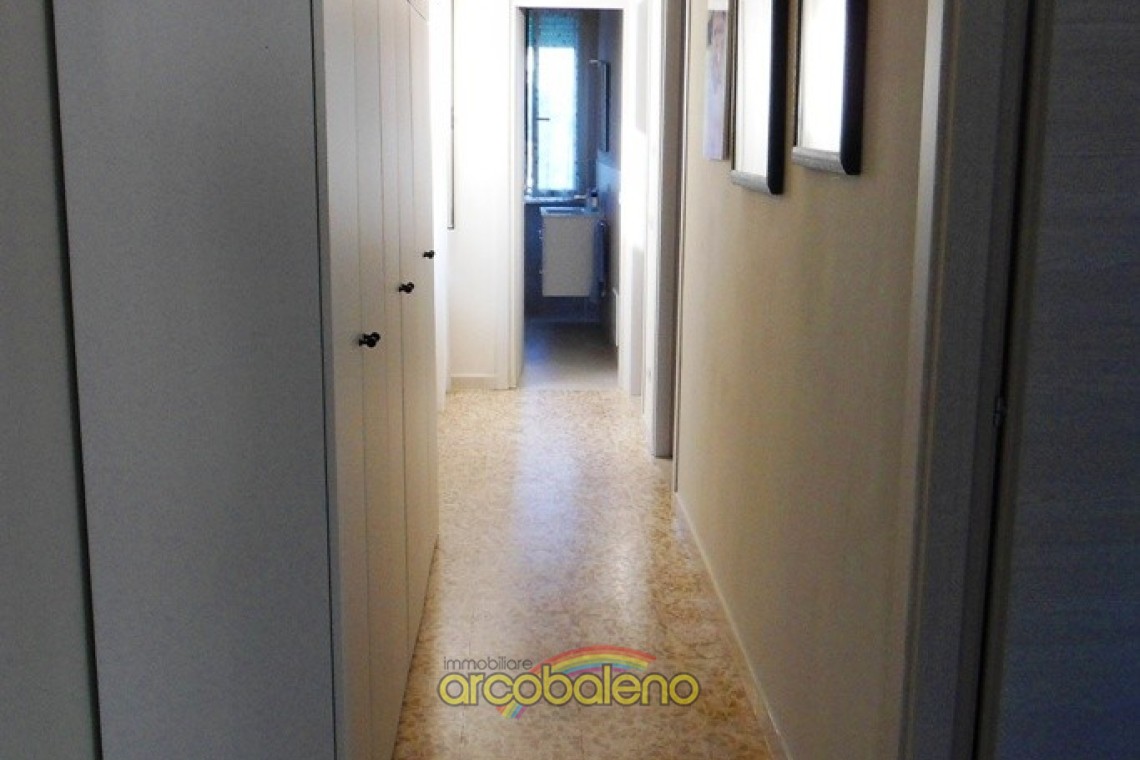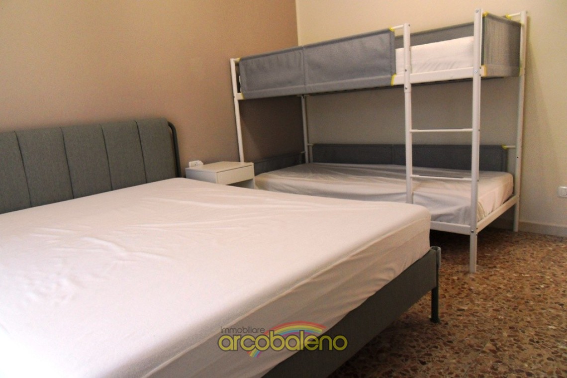L’alloggio di ampie dimensioni è composto da : cucinotto, un grande soggiorno/pranzo, 2 camere matrimoniali, 2 bagni con doccia, il disimpegno notte e giorno e il terrazzo.