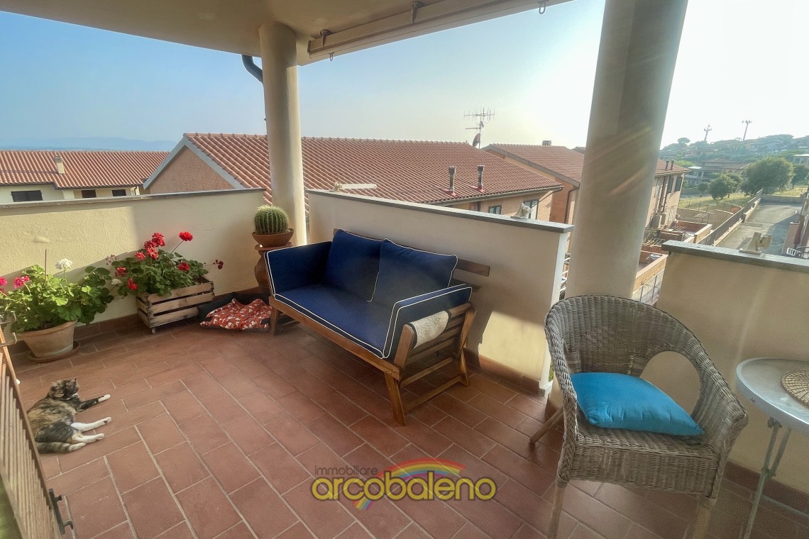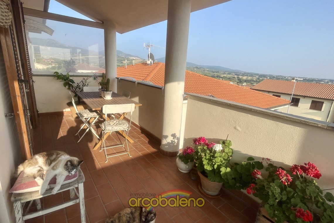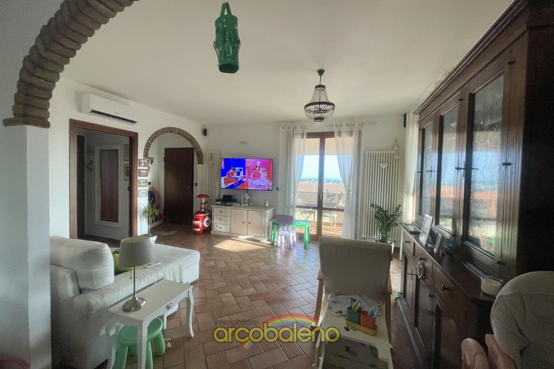 Vendesi in esclusiva , appartamento al piano secondo ed ultimo di un piccolo edificio di sole 4 unità abitative. L'immobile si compone di un'ampia zona giorno divisa da un arco in due zone , una comprende la cucina abitabile , ripostiglio con dispensa e lavanderia , l'altra comprende ampio salotto con doppio affaccio sulla spaziosa terrazza con vista mare ; disimpegno notte con due camere e bagno finestrato con doppio lavabo e box doccia.