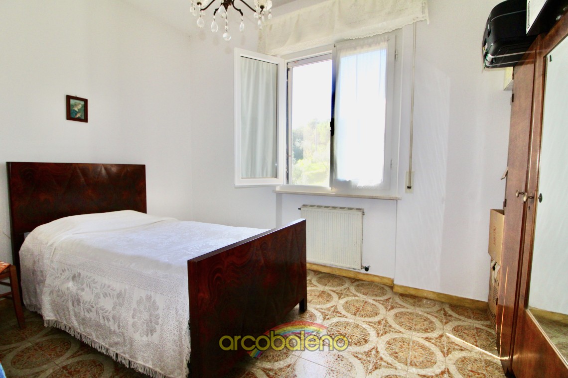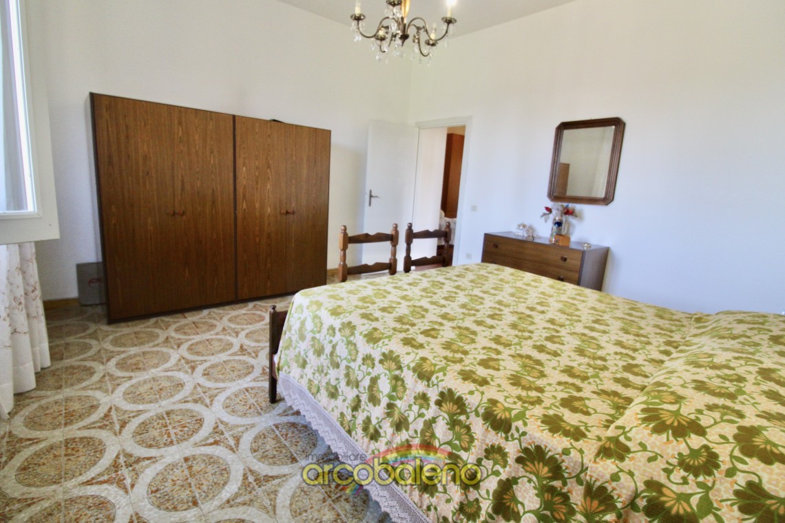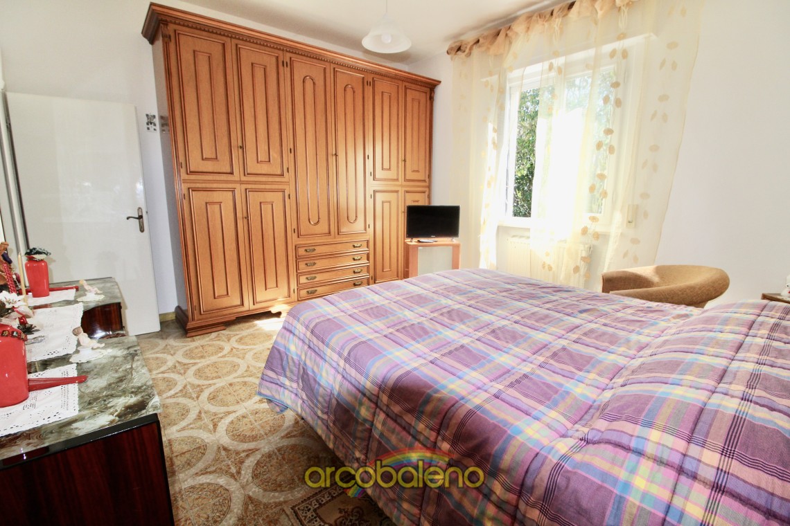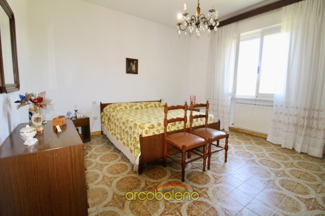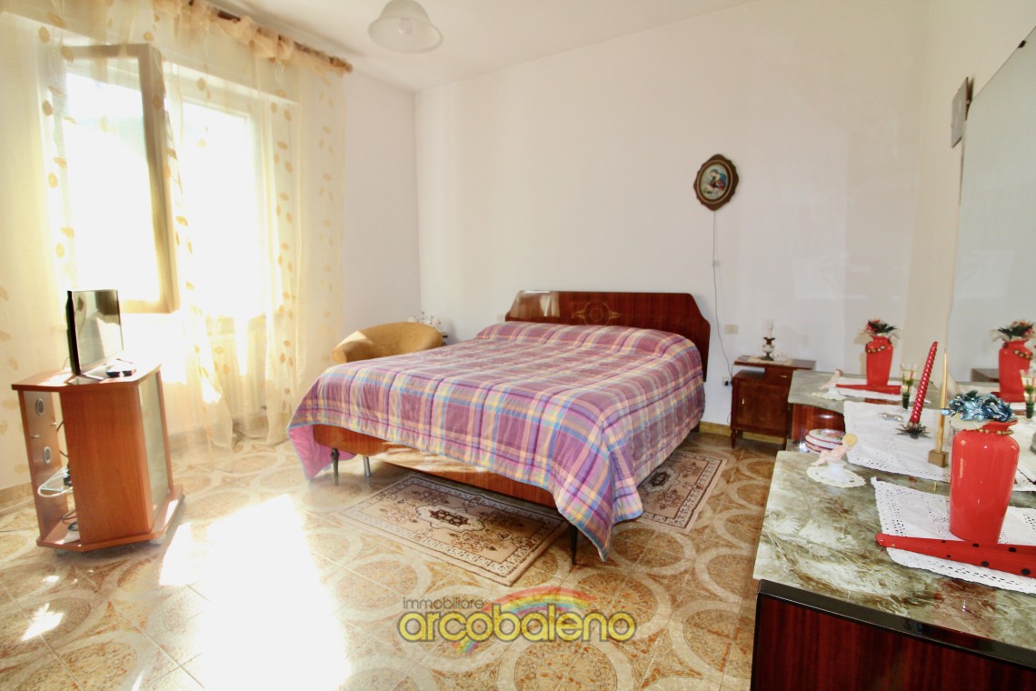 L'appartamento ha una superficie di mq 130 composto da ingresso , cucina dalla quale si accede ad piccolo balcone dove si trova un ripostiglio esterno , sala da pranzo ; un arco in pietra nel corridoio divide la zona giorno dalla zona notte che è composta da due ampie camere matrimoniali , una camerina ed il bagno.